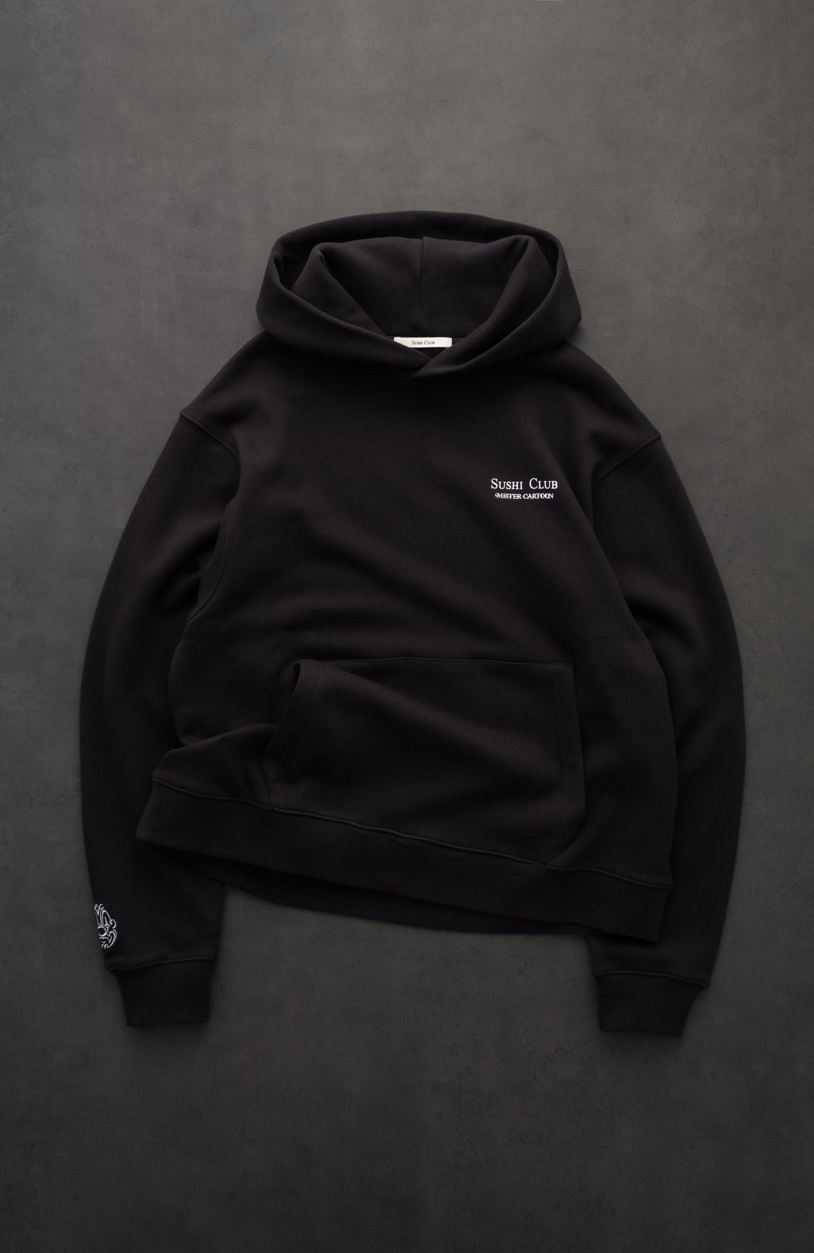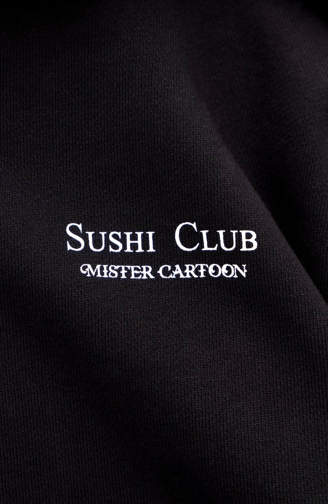 Mister Cartoon for Los Angeles Sushi Club small logo printed on chest.