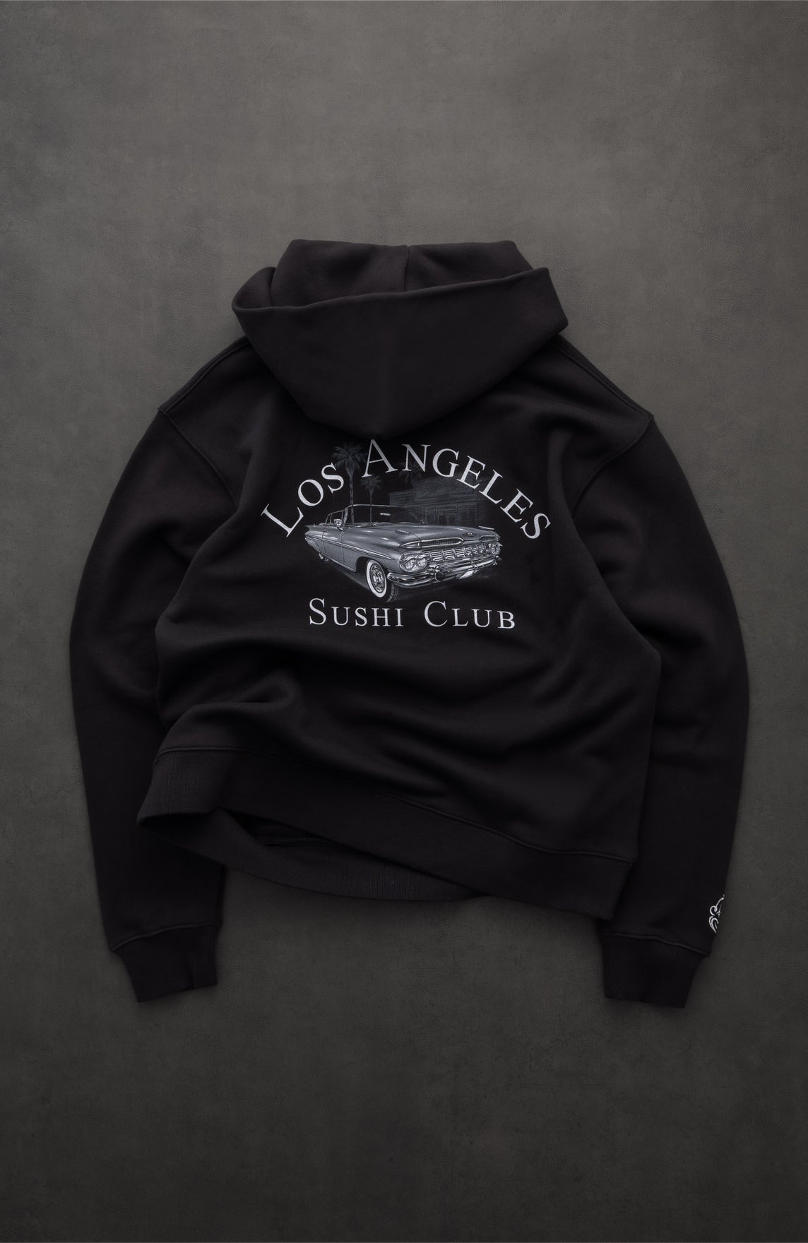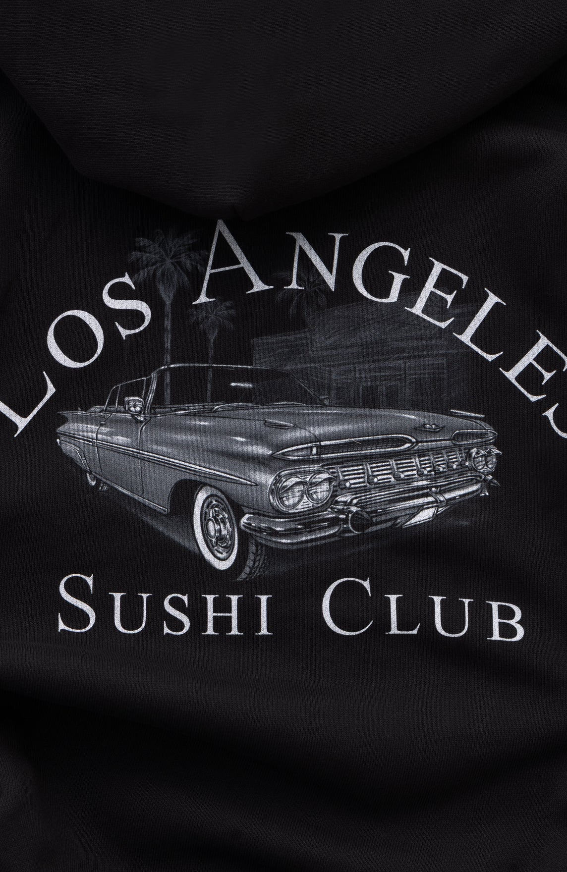 Mister Cartoon for Los Angeles Sushi Club large logo printed on back.