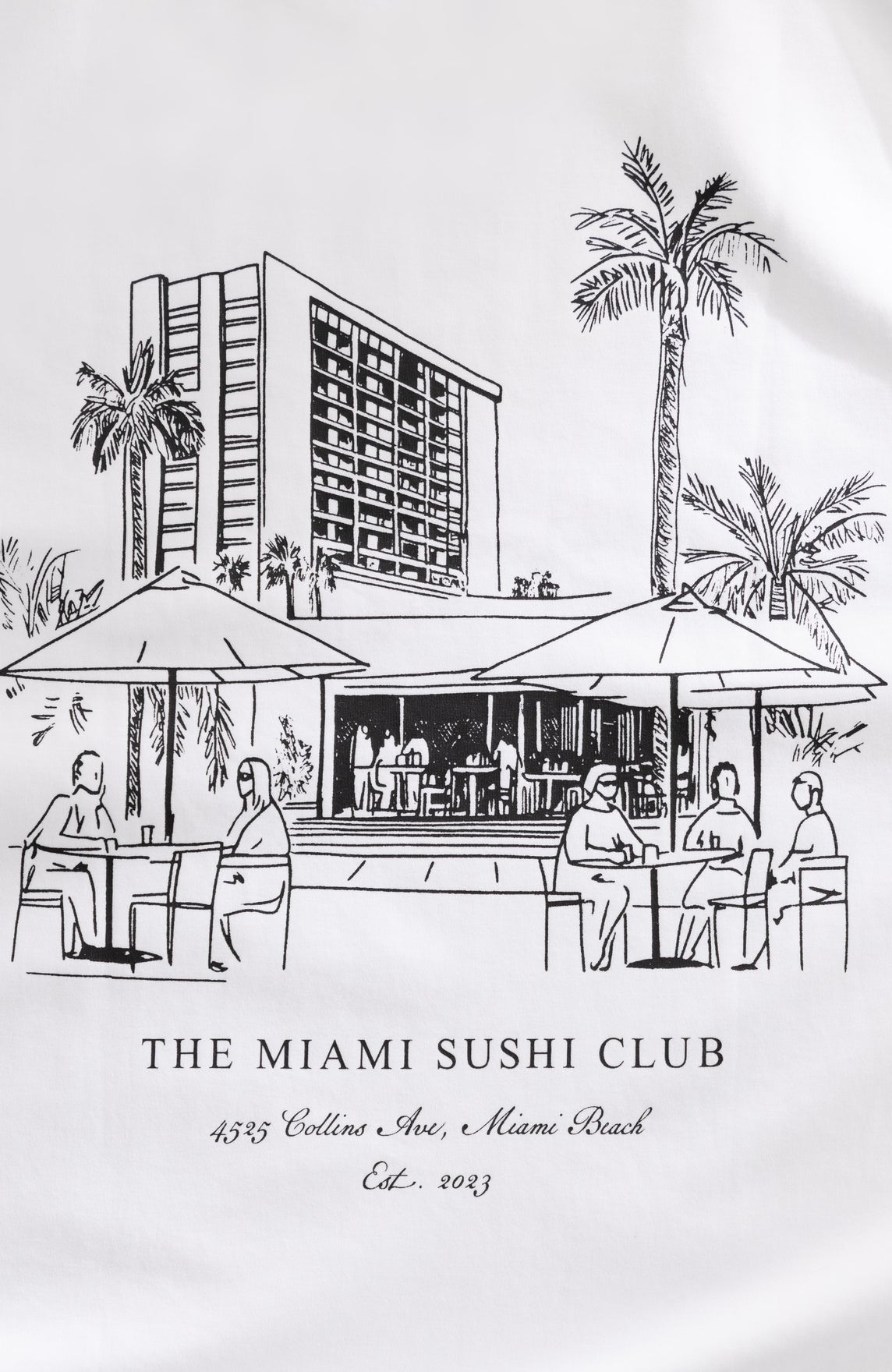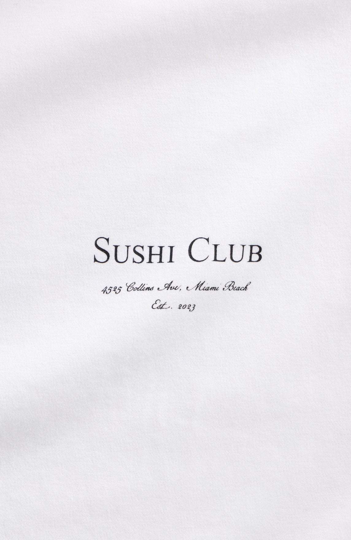 Miami Sushi Club printed on front left chest.