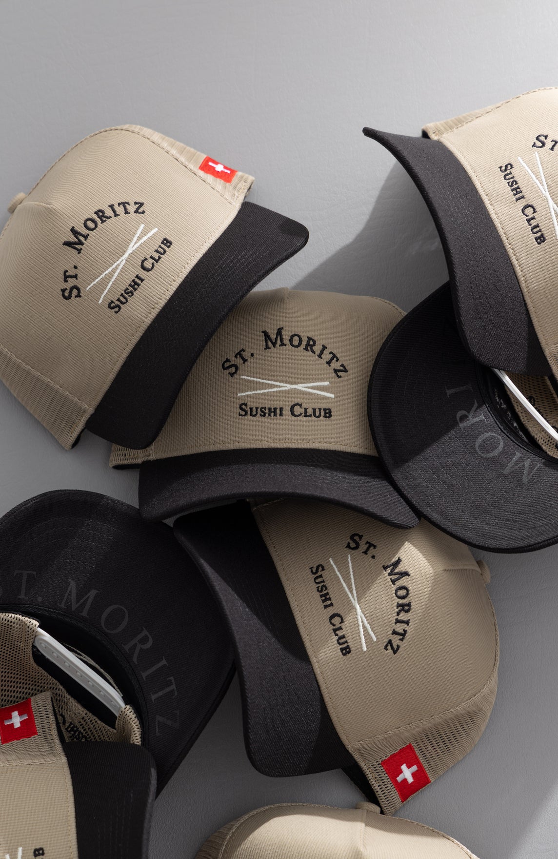 St. Moritz Sushi Club embroidery at front.